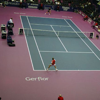 這是一種平鋪在任何一種平整堅(jiān)實(shí)地面上,可固定也可臨時(shí)粘接、可裝可拆的卷材這種在工廠加工成成品的卷材,其結(jié)構(gòu)是一層橡膠襯底、一層纖維、一層塑膠涂層組合而成每條寬度在 5 米 左右,便于卷起來分塊運(yùn)輸。這種卷材球場面層的最大優(yōu)點(diǎn)是可以易地使用,與其配套使用的網(wǎng)球柱、球網(wǎng)也是按組合式設(shè)計(jì)的。
